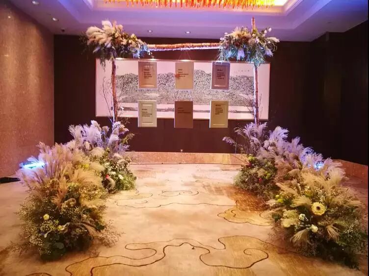 在活动现场的花艺展区就是朱微微老师亲手打造的,绿植花卉与玛格的实木门板陈列结合,既营造了会议空间的小美好,也凸显了玛格实木的温润。