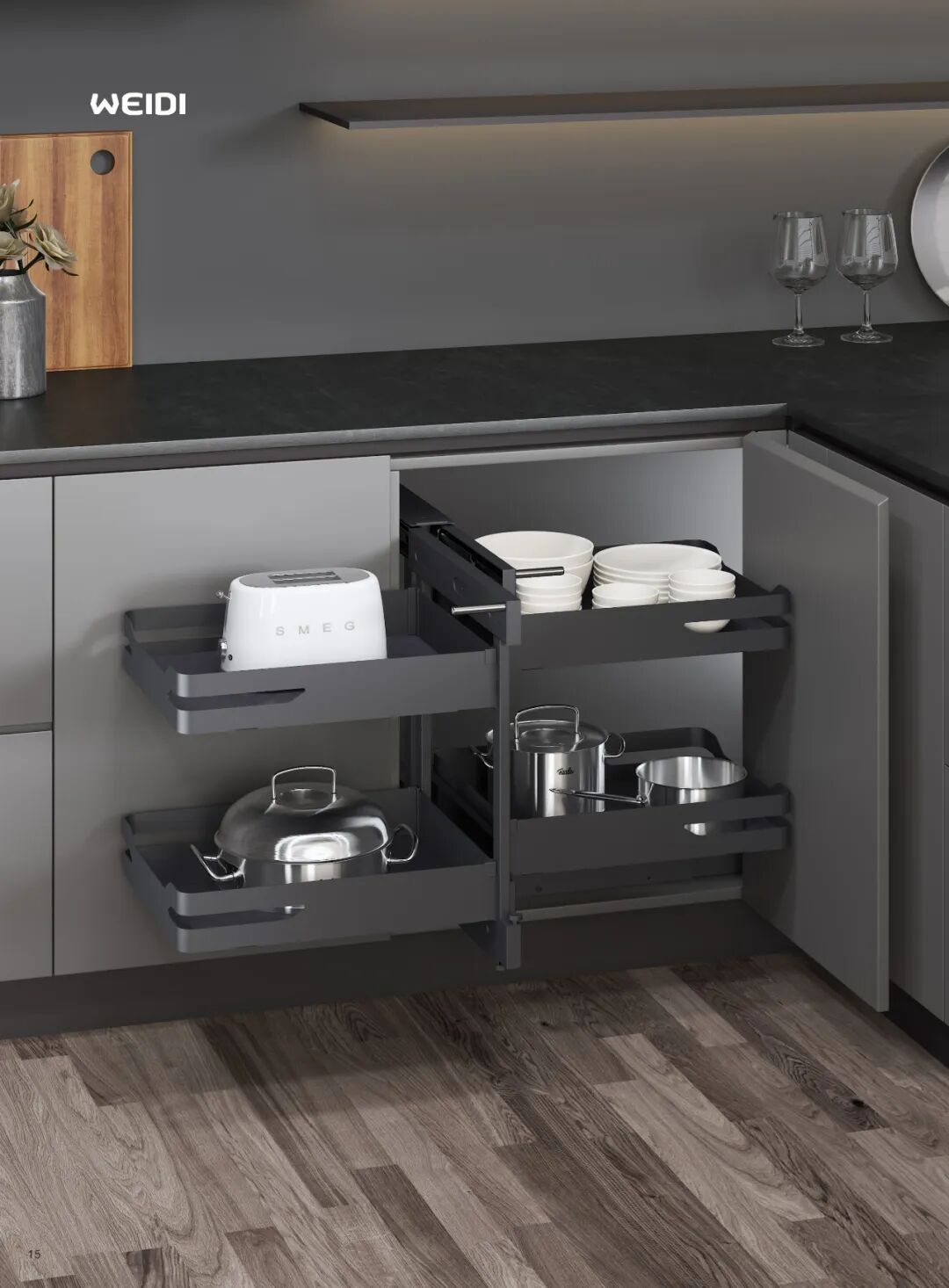 在今年2025中国家博会(广州)设备配料展上,威迪就推出一系列全新的家居收纳五金产品,这些产品专为厨房、衣帽间以及家居中需要柜内收纳的区域设计。