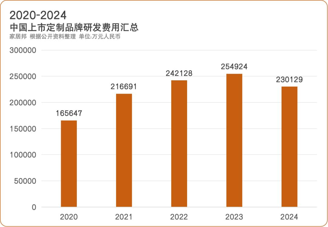 ◎2020-2024 中国上市的定制品牌研发费用汇总