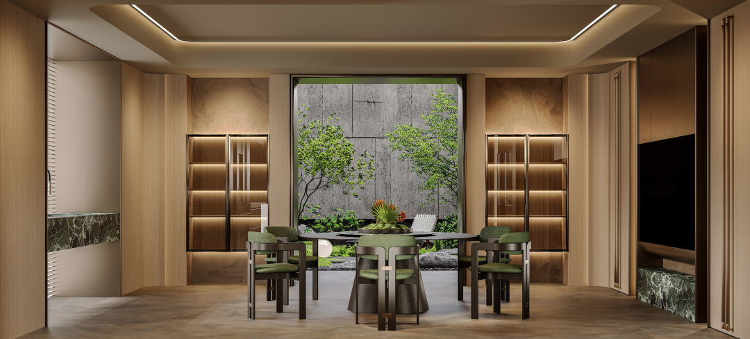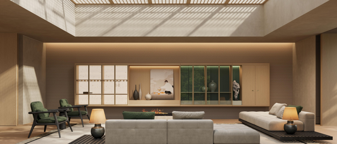 宋式美学部分,以宋式中古风为基调,通过厅柜、茶室体现出:温暖怀旧、宋式淡雅、松弛感和沉浸内敛的设计标签。