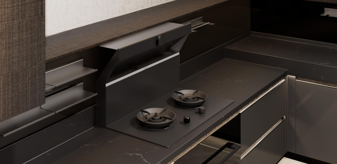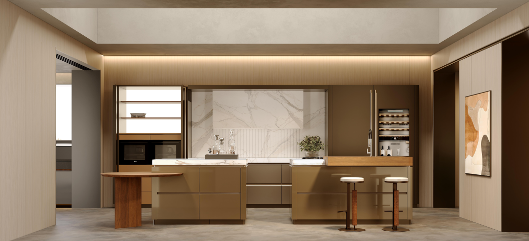 意式东方,以中厨功能集成化,西厨、中餐厅“社交化”为创意基调,通过设计与产品配置分别突出中西厨房的不同侧重点。