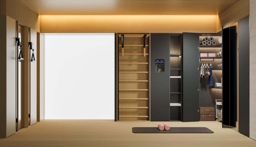 居家健身仓的几大模块是在原有基础上的升级,让健身达人居家体验和健身器材的收纳更具品质与高效。