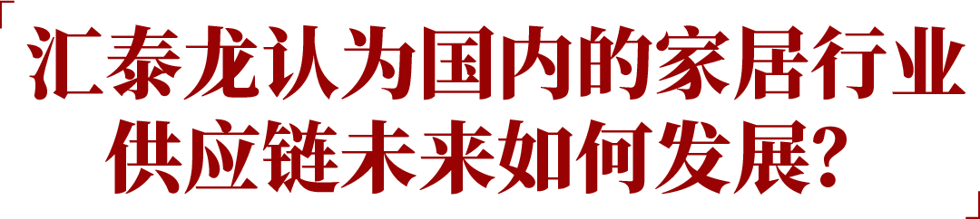 就家居供应链的方向,汇泰龙表示总结起来就12个字,品质为先,创新驱动,各自精彩。