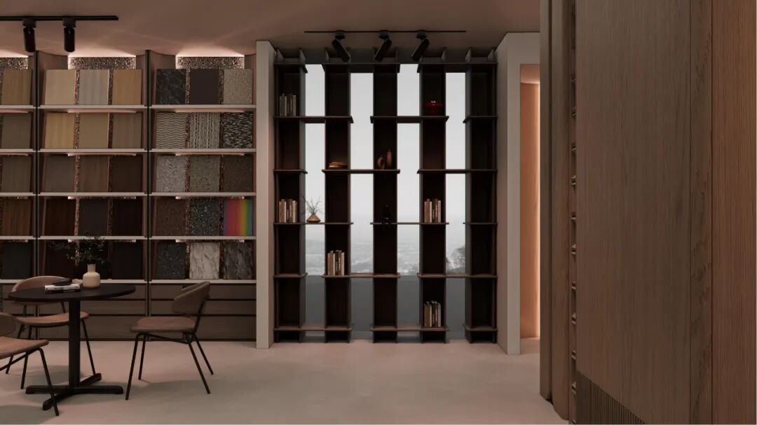 以宋代建筑桁梁般的轮廓为特色,轻盈、富有变化的层板具有无限延伸感,在空间中营造出横向灵动的视觉效果,重塑「宋而新」的生活方式。